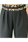 - Önü düğme kapamalı ve arkası leopar desenli bol pantolon tasarımı ile hem sofistike hem de trend bir görünüm sunar.