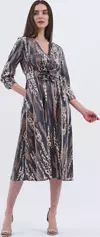 - Üç çeyrek uzunluğundaki kolları ve bel kısmındaki çiçek detayı ile zarif bir duruş sergileyen bu elbise, sizin için tasarlandı.