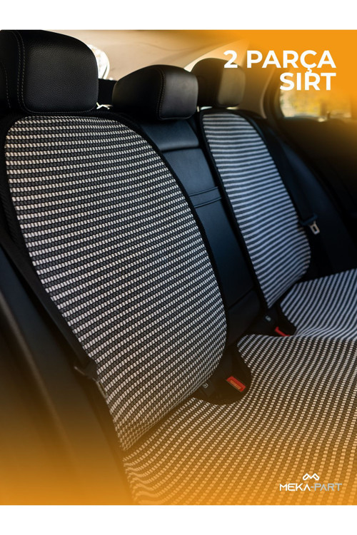 Oto Koltuk Koruyucu Kılıf 2 Parça Sadece Arka Koltuk Sırt Universal Çizgili Füme Beyaz