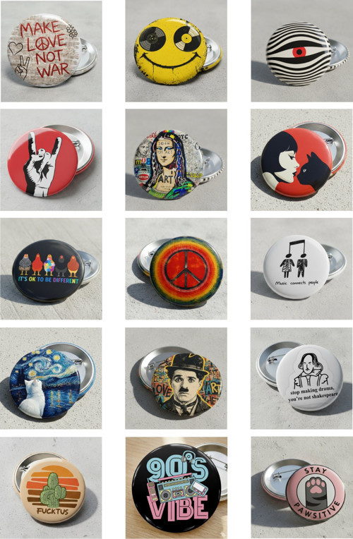Renkli tasarımlar, güçlü mesajlar ve pop kültür dokunuşlarıyla hazırlanan Art & Vibe Trend Rozet Seti, stiline karakter katmak isteyenler için tasarlandı. Sanat, müzik, barış, mizah ve retro esintileri bir araya getiren bu 15’li rozet seti, dikkat çekici ve özgün bir görünüm sunar.