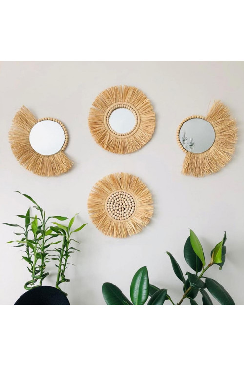 Doğal hasır rafya ayna seti, evinizin dekorasyonuna doğal bir dokunuş katmak için idealdir