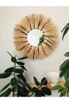 Tek parça halinde gelen bu rafya yuvarlak ayna, modern dekorasyon anlayışınıza şıklık katmak için idealdir