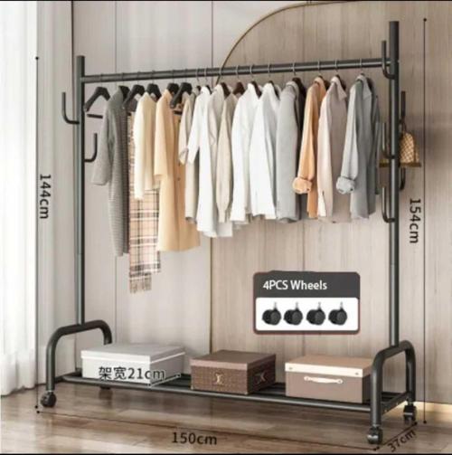 Trendesk Metal Siyah Portmanto Konfeksiyon Askısı Ayaklı Askılık Elbise Askılığı Tekerlekli 154x150 Cm 1062