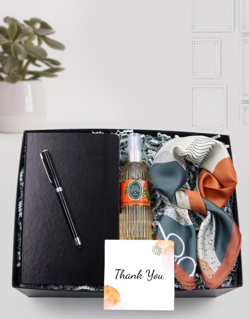 Trendmiya Siyah Defter & Siyah Touch Pen & Eyüp Sabri Tuncer Sprey Kolonya & Kahverengi Fular Hediye Seti