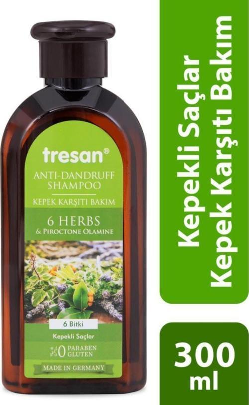 Kepek problemi mi? Tresan ile kepeklenmeye dur deyin! Düzenli kullanım ile saç derinizdeki yağ dengesini düzenleyip, kepek oluşumunu önleyen Tresan 6 Bitki Kepek Karşıtı Şampuan ile daha canlı, daha yumuşak saçlara kavuşun. Üstelik paraben ve gluten içermez. Her saç tipi için günlük kullanıma uygundur. Bitki İçeriği: Papatya, Kediotu, Civanperçemi, Şerbetçiotu, Melisa, Rezene bitki ekstreleri, Panthenol ve %0,3 oranında Piroctone Olamine Kullanım Önerisi: Islak saça masaj yaparak uygulayınız, 2 dakika bekleyip bol su ile durulayınız. Küçük bir miktar almanız yeterlidir. Daha iyi bir etki için hemen sonrasında havlu ile nemi alınmış saçlarınıza Tresan Kayın Ağacı Güçlendirici ve Canlandırıcı Saç Toniği uygulayabilirsiniz.
