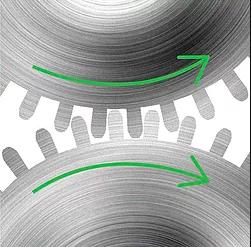 Greenstar Elite’in sunduğu, çığır açan paslanmaz çelik çift dişli sistem, insan öğütme sistemini taklit eden özel noktalara sahiptir. İlk olarak, Çift Dişli Öğütücü Mekanizmanın dişlileri, havuç gibi daha sert sebzelerin işlenmesini kolaylaştırmak için özel cep girintileri ile tasarlanmıştır. Bu aynı zamanda ilk ezme işleminde daha keskin bir kenar sağlayarak sert gıdaları işlerken kullanılan motor gücünü azaltmaktadır. İkinci olarak, daha fazla sıvıyı daha etkin bir şekilde elde etmenizi sağlamak ve lifli sebzeleri işlerken dolanma veya tıkanmaya engel olmak amacı ile, dişlilerin üstüne kesme noktaları yerleştirilmiştir.