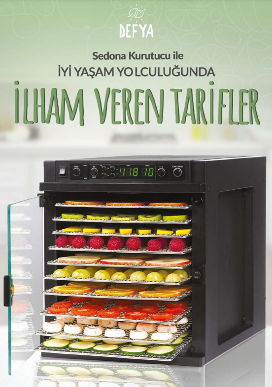 Meyve Ruloları 4-6 Saat Otlar ve Baharatlar 2-4 Saat Kuru Et 4-6 Saat Kuru Yemiş 10-14 Saat Kuru Balık 12-14 Saat Tekrar Kurutma 1 Saat