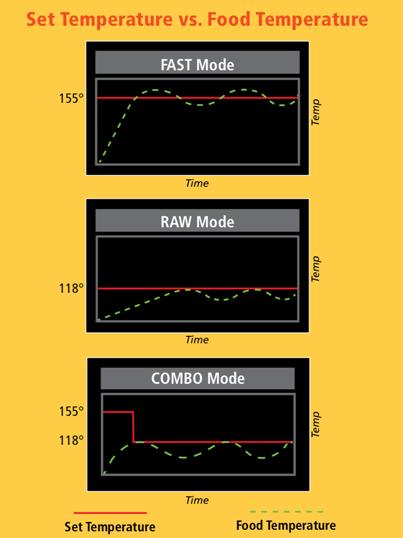 COMBO ayarında ise (İki Aşamalı Ardışık Sıcaklık Zamanlayıcısı (TST) aleti kısa bir süre için daha yüksek dereceli FAST ayarında çalıştırıp, daha sonra RAW ayara otomatik olarak düşürebilirsiniz. Bu özellikle hızla nemin atılması gereken domates gibi ürünler için çok önemlidir. Yüksek miktarda su içeren bazı meyve ve sebzeleri kuruturken fermantasyonu önlemek için daha yüksek başlangıç ısısı kullanmak gerekir.