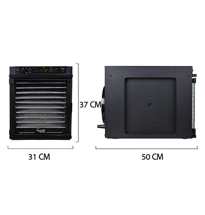 Sedona Express Meyve ve Sebze Kurutma Makinesi’nin ön panelinde bulunan dijital termostat sayesinde kurutma işlemlerinde istediğiniz dereceyi net olarak belirleyebilirsiniz. Şeffaf cam kapağı sayesinde kurutucunun içerisindeki işlemin ne aşamada olduğunu rahatlıkla görür, paslanmaz çelik tutma kolu ile kapağı açabilirsiniz. Kapak açıldığı zaman LED ışıklar yanar ve kurutma işlemi otomatik olarak durup, kapak kapandığında tekrar kaldığı yerden çalışmaya devam eder,