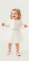 - Üst Kısım: Yumuşak dokulu triko bolero, uzun kollu ve konforlu yapısıyla bebek cildine dosttur.