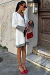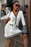 Triko Kolları Püsküllü Düğmeli Elbise 2849