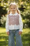 Kız Çocuk Dantel Detaylı Gömlek ve Kot Pantolon Takımı