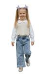 Kız Çocuk Dantel Detaylı Gömlek ve Kot Pantolon Takımı