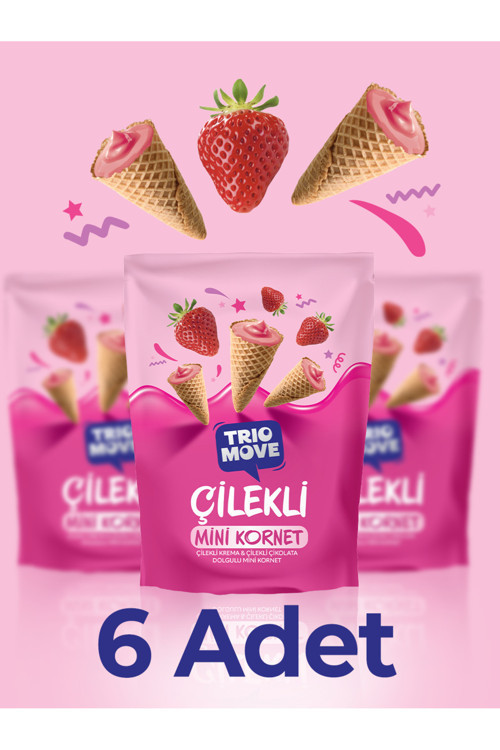 TrioMove Mini Kornet - Çilekli Krema, Çilekli Çikolatalı (6 Paket) Trio Move