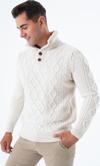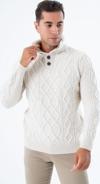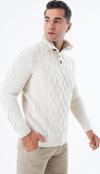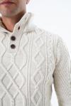 Trist Star Bej Erkek Kürklü Dik Yaka Kısa Patlı Düğmeli Yürütme Saç Örgülü Triko Örme Kazak Trıst-5345