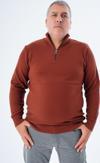 Trist Star Büyük Beden Erkek Kiremit Fermuarlı Dik Yaka Pirinç Örgü %100 Pamuk Triko Kazak Trıst-2113
