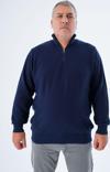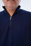 Trist Star Büyük Beden Erkek Lacivert Fermuarlı Dik Yaka Pirinç Örgü %100 Pamuk Triko Kazak Trıst-2113