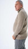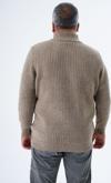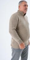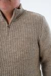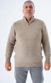 Trist Star Büyük Beden Erkek Vizon Zikzak Yürütmeli Dik Yaka Kısa Fermuarlı Triko Yün Kazak Trıst-2117