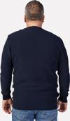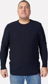Büyük beden tasarımıyla rahat bir kullanım sunan lacivert bisiklet yaka kazak, geniş kesimiyle gün boyu konfor sağlar