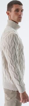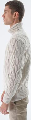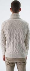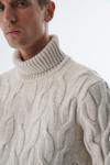 Saç örgü deseniyle klasik ve zamansız bir stil sunarken, balıkçı yaka detayı ile şıklığına şıklık katar