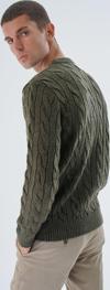 - Bisiklet yakası ile modern ve zamansız bir stil oluştururken, saç örgü deseniyle göz alıcı detaylar ekler