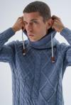 Trist Star Erkek Havacı Şal Yaka Yürütme Saç Örgülü Yün Triko Örme Kazak Trıst-5342