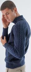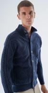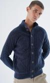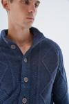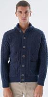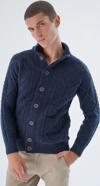 Trist Star Erkek Lacivert Dik Yaka Düğmeli Yürütmeli Saç Örgülü Cepli Yün Triko Örme Hırka Trıst-5326