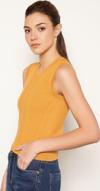 Trist Star Hardal %100 Organik Pamuk Saç Örgülü Fitilli Bisiklet Yaka Triko Atlet Örme Bluz
