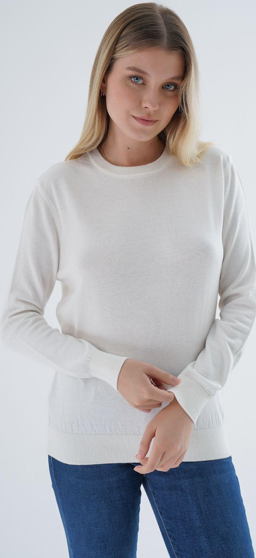 %100 organik pamuk materyali ile üretilmiş, cildinize nefes aldıran ve doğal bir konfor sunan kadın triko kazak
