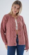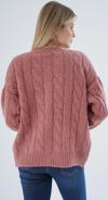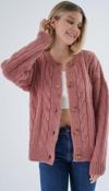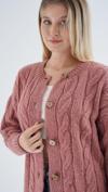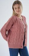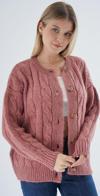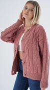 Trist Star Kadın Gül Kurusu Oversize Bisiklet Yaka Düğmeli Saç Örgülü Yün Karışımlı Triko Örme Hırka Trıst-6166