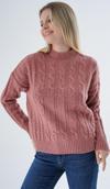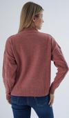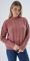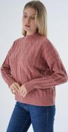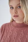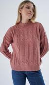 Trist Star Kadın Gül Kurusu Oversize Yarım Balıkçı Saç Örgülü Yünlü Özel İplik Triko Örme Kazak Trıst-6158