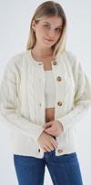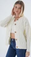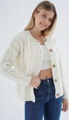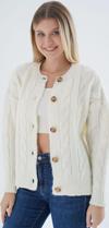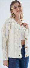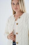 Trist Star Kadın Kemik Oversize Bisiklet Yaka Düğmeli Saç Örgülü Yün Karışımlı Triko Örme Hırka Trıst-6166