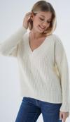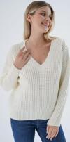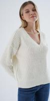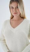 Trist Star Kadın Kemik Oversize V Yaka Nopen Selanik Örgü Yünlü Özel İplik Triko Örme Kazak Trıst-6160