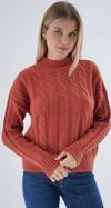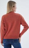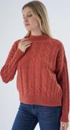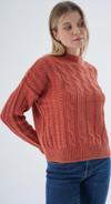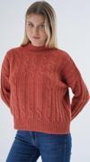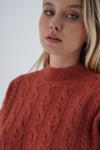 Trist Star Kadın Kiremit Oversize Yarım Balıkçı Saç Örgülü Yünlü Özel İplik Triko Örme Kazak Trıst-6158