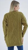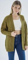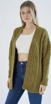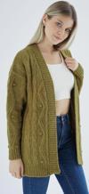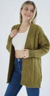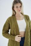 Trist Star Kadın Olive Oversize Pon Ponlu Yürütme Örgülü Uzun Yün Karışımlı Triko Örme Hırka Trıst-6165