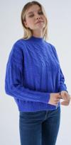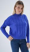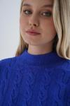 Trist Star Kadın Saks Oversize Yarım Balıkçı Saç Örgülü Yünlü Özel İplik Triko Örme Kazak Trıst-6158