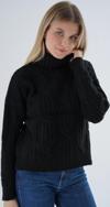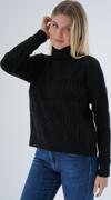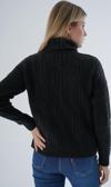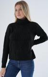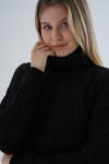Trist Star Kadın Siyah Oversize Balıkçı Yaka Selanik Saç Örgülü Yünlü Özel İplik Triko Örme Kazak Trıst-6159