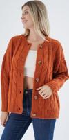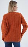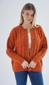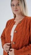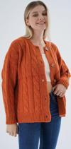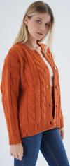 Trist Star Kadın Turuncu Oversize Bisiklet Yaka Düğmeli Saç Örgülü Yün Karışımlı Triko Örme Hırka Trıst-6166
