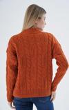 Trist Star Kadın Turuncu Oversize V Yaka Saç Örgülü Ajurlu Düğmeli Yün Karışımlı Triko Örme Uzun Hırka