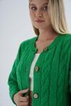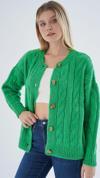 Saç örgü deseniyle şık ve modern bir görünüm sunan bu hırka, günlük kullanıma uygun rahatlığı ve stili bir arada sunar