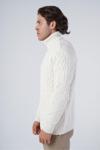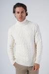 Saç örgü deseniyle klasik ve zamansız bir stil oluştururken balıkçı yaka detayı ile modern bir dokunuş ekler