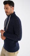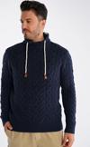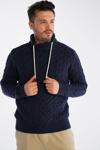 - Klasik ve zamansız bir tarz sunan lacivert erkek boru yaka saç örgülü triko yün kazak, her gardıropta yerini alacak