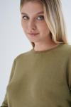 %100 organik pamuk materyali ile üretilmiş, cildinize nefes aldıran ve doğal bir konfor sunan bisiklet yaka triko kazak bluz