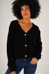 Young koleksiyonuna özel tasarlanmış, her yaş grubuna hitap eden düz desenli siyah hırka