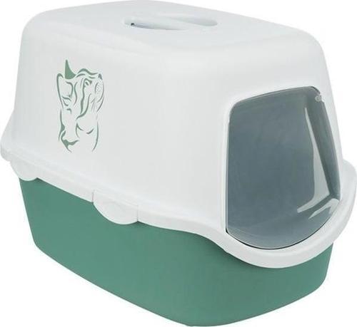 Trixie Kedi Kapalı Tuvaleti 40x40x56cm Yeşil-Beyaz Kedi resimi baskılı çift cidarlı ve yüksek kenarları sayesinde kedi çişinin ve kedi kumunun dışarı çıkmasını engelleyerek kullanıldığı ortama ekstra hijyen sağlar.