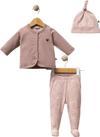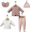Gros Shop Müslin Yeni Doğan 4Katlı Organik %100Pamuk Kişiye Özgü Nakışlı Hastane Çıkış Seti (Pudra Biyeli-1) - Image 1