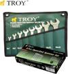 TROY 21508 Açık Ağız Anahtar Takımı ? Açık ağız anahtar takımı ? Krom vanadyum malzeme, nikel krom kaplama, sertleştirilmiş, C 38 sıcak dövme ağızlar ? Ölçüler : 6-7-8-9-10-11-12-13-14-17-19-22mm !
