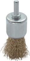 ? Pimli kalem tel fırça, Ø17mm ? 0,3mm pirinç kaplı tel ? Mil çapı: 6mm ? Maksimum devir: 4500rpm ? Matkaplarla kullanım için uygundur ? Erişilmesi güç alanlardaki pas, tortu ve boya kalıntılarını uzaklaştırmak için kullanılır ? Blister ambalajlı