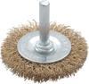 ? Pimli daire tel fırça, Ø75mm ? 0,3mm pirinç kaplı tel ? Mil çapı: 6mm ? Maksimum devir: 4500rpm ? Matkaplarla kullanım için uygundur ? Erişilmesi güç alanlardaki pas, tortu ve boya kalıntılarını uzaklaştırmak için kullanılır ? Blister ambalajlı