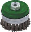 ? Burma telli kuşaklı çanak fırça, Ø100mm ? 0,5mm burma telli, M14 dişli ? Erişilmesi güç alanlardaki pas, tortu ve boya kalıntılarını uzaklaştırmak için kullanılır ? Karton kutulu
